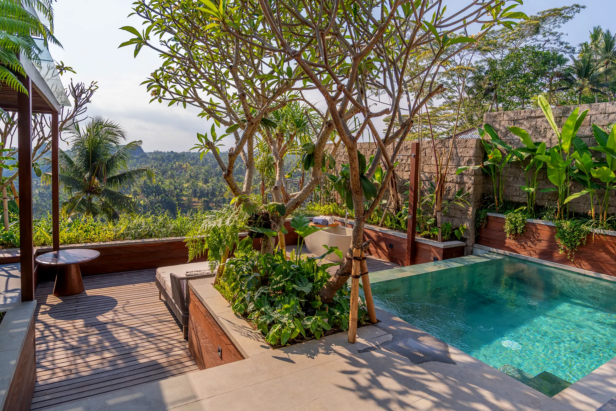 Sayan is not just a location; it’s a retreat into nature’s embrace. Surrounded by undulating hills and the majestic Ayung River, the area boasts some of Bali’s most breathtaking views. The tranquil atmosphere here is a stark contrast to the bustling streets of nearby Ubud, yet close enough for guests to easily dip into the town’s lively arts and cultural scene.